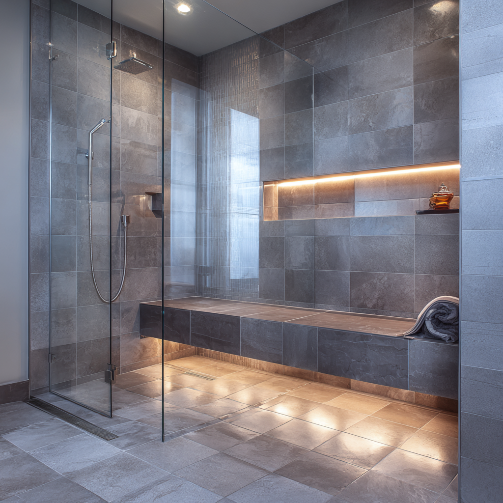 Remove barriers. Combine shower and floor with one continuous tile. Install a linear drain along the wall. Add a folding glass panel instead of a door. The entire 6×6 room becomes usable. Waterproofing is key. This small bathroom layout idea maximizes every inch.